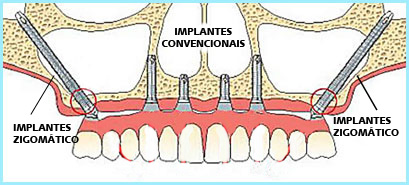 Em casos onde não há osso suficiente no maxilar, o implante é instalado desde a região dos dentes até a região do osso zigomático. Este apresenta uma estrutura em quantidade e qualidade adequadas para a colocação e sustentação de implantes que podem apoiar uma prótese fixa. A intervenção é simples, ocorrendo sob anestesia local ou geral. Tão logo se recupere da anestesia, o paciente pode ir para casa. A prótese é colocada de imediato.