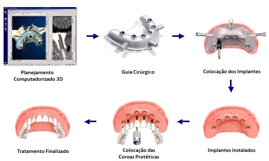 Através da tomografia computadorizada do paciente, os dados obtidos são colocados no computador e através de uma prototipagem é confeccionada uma guia cirúrgica, que dá ao profissional o posicionamento e a inclinação exata dos implantes a serem instalados; Além de promover maior celeridade ao tratamento, eliminando algumas etapas. Esta técnica é direcionada às condições de cada paciente, portanto, indicada para casos específicos.